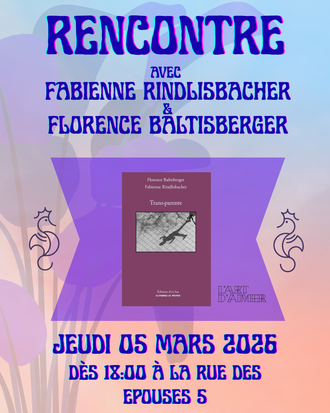 Dans le cadre de notre cycle L’Art d’aimer les rencontres, nous avons le plaisir d’accueillir Catherine Choffat à la librairie. 👉 Jeudi 29 janvier 2026 à 18h00, l’autrice viendra présenter