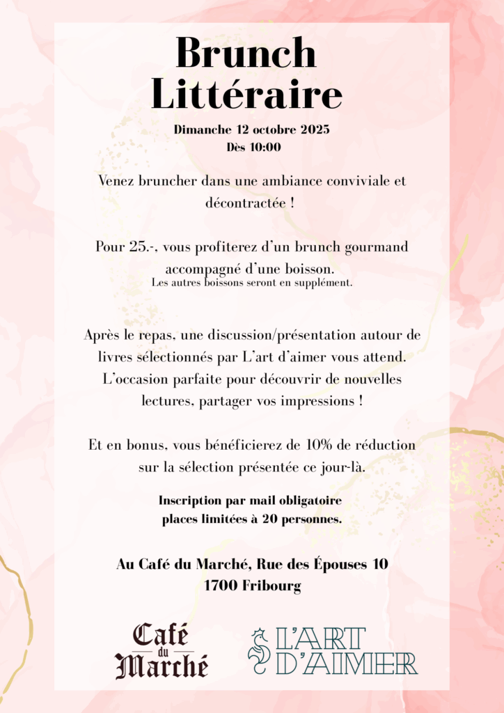 👉 Dimanche 12 octobre 2025 dès 10h00, retrouvez-nous au Café du Marché (Rue des Épouses 10, 1700 Fribourg) pour une matinée placée sous le signe de la détente et de la découverte.